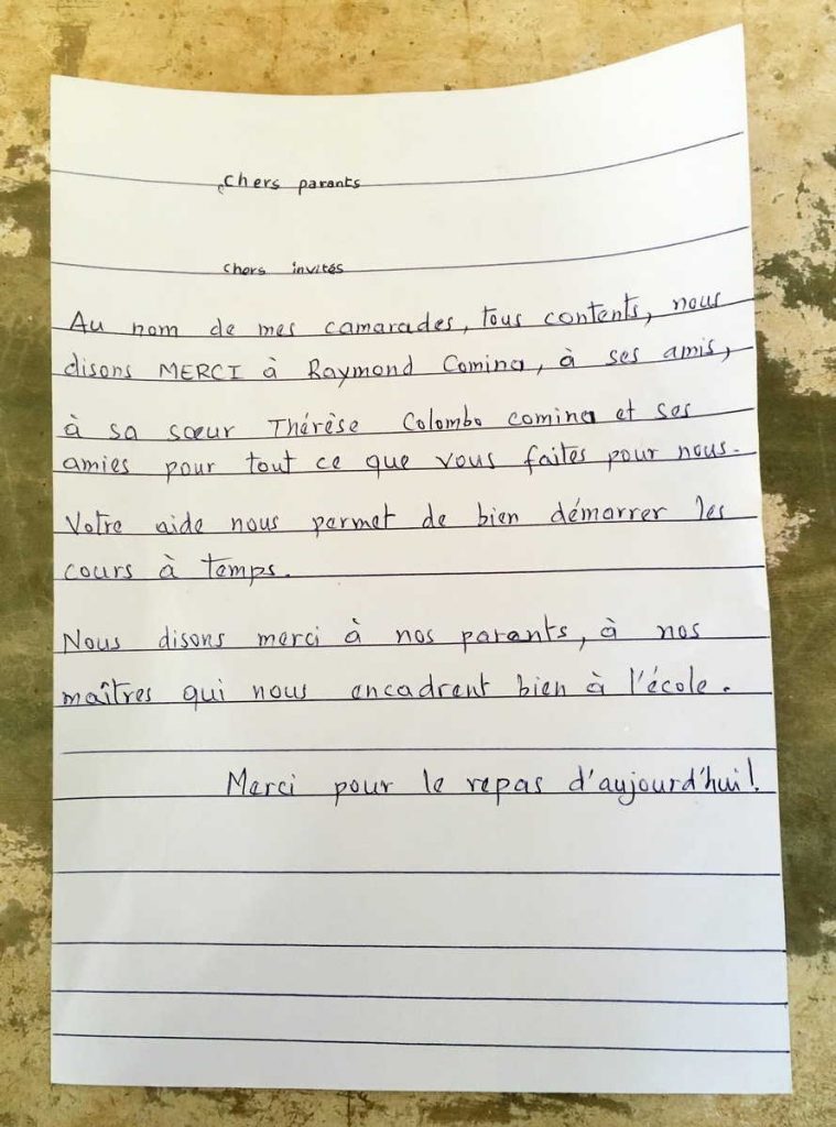 Remerciements de l'association des parents : mars 2017